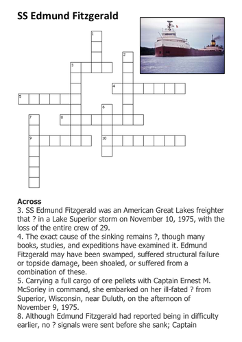 Please wait the page is loading. When launched on june 7 1958 she was the largest ship on north americas great lakes and she remains the largest to have sunk there. The edmund fitzgerald she was launched into this world with a splash so big that one of the guests viewing the side launch became so excited that he had a heart attack right on the spot. Displaying top 8 worksheets found for edmund fitzgerald. More sketches take a peek at some of the sketches created by our users are you a sketchite. Edmund fitzgerald shipwreck pages of edmund fitzgerald underwater printable pages edmund fitzgerald great lakes page edmund fitzgerald pages for kids edmund narnia.